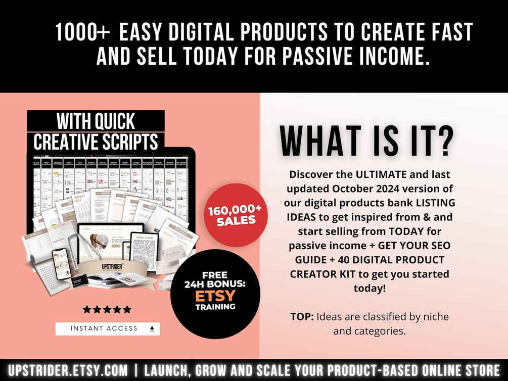 This digital products ideas resource is for all ambitious and driven online small business owner who is serious about driving QUALITY traffic into their store and converting it into BIG SALES. Upstrider is for people who want to go full-time with their online business. 🔥